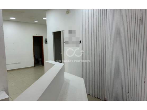 - Cuarto interior separado por puerta y drywall, mostrador adecuado para atención de clientes.
